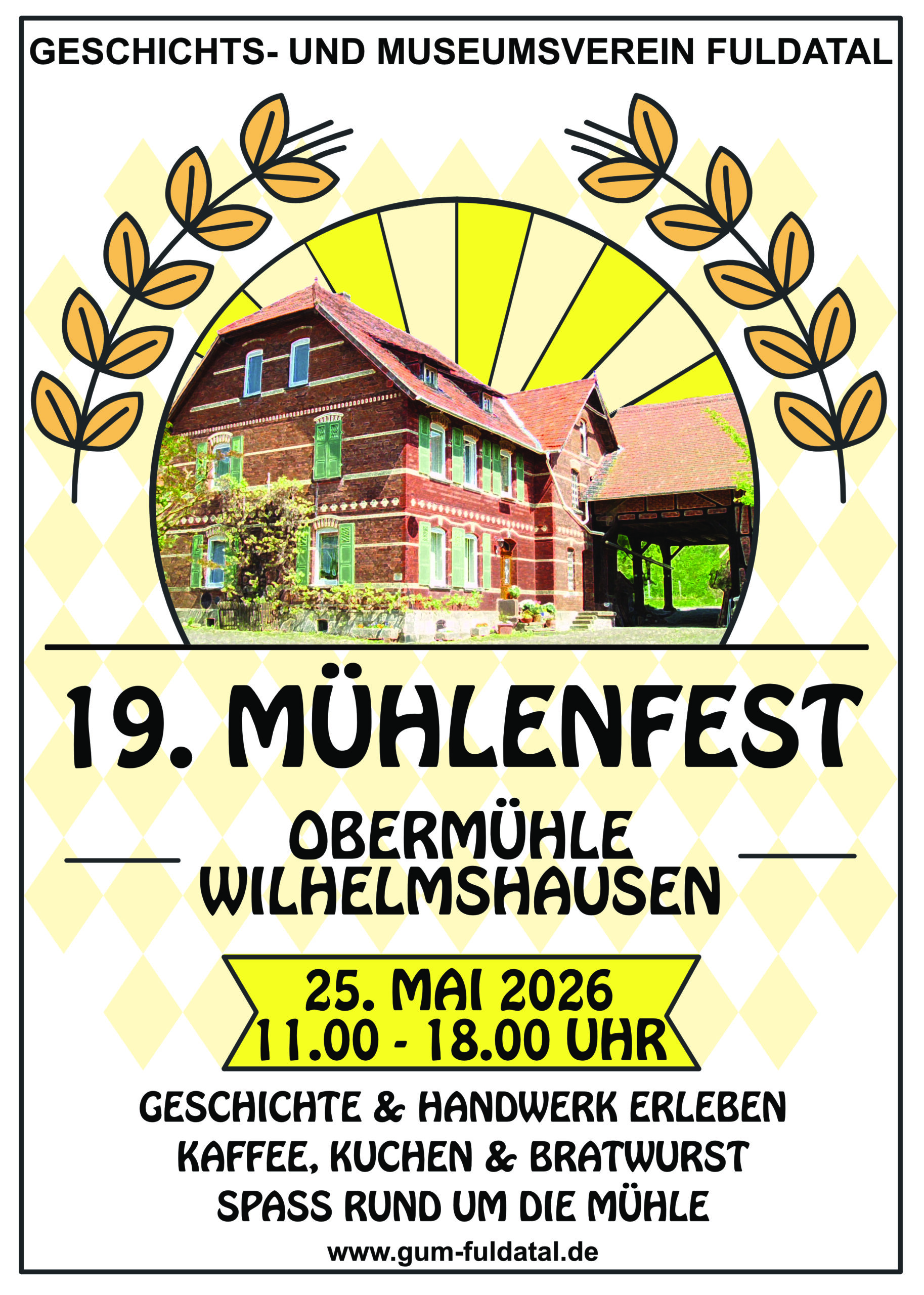 19. „Mühlenfest – Pfingstmontag, „Obermühle Wilhelmshausen“ – Montag, dem 25. Mai 2026 von 11.00 bis 18.00 Uhr
